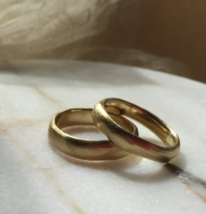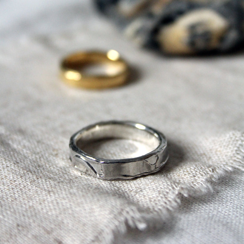 Let's chat about what makes these ethical men's wedding bands so different and special. Firstly each band is handcrafted by Emma, thus making them as unique as you; not one will always be different. You can work with Emma to edit the ring's sizes, widths, textures, and finishes. Personalising it to suit your needs, your lifestyle and perhaps capturing a little something that’s sentimental to you both too. We love the use of engraving or adding textures to represent hobbies or places that are meaningful to you. Creating a secret kind of symbolism for you and your partner's eyes. What's even more special is that they are handmade for you, they are fully transparent- you will know how it has been made, where it was made and what was used to make it! You can even visit our studio/ shop to see where it was crafted.