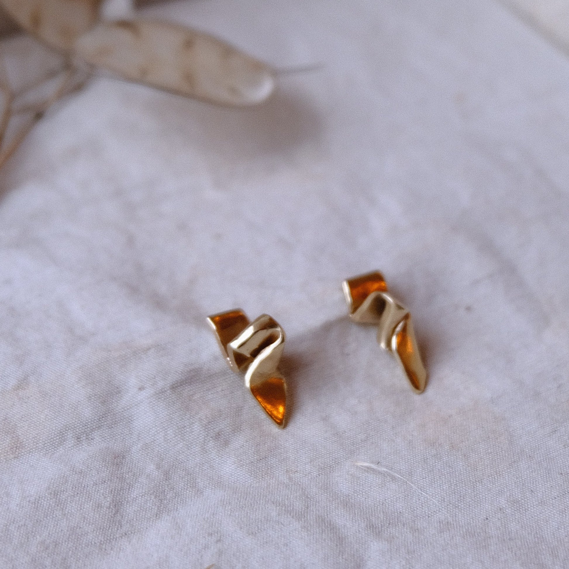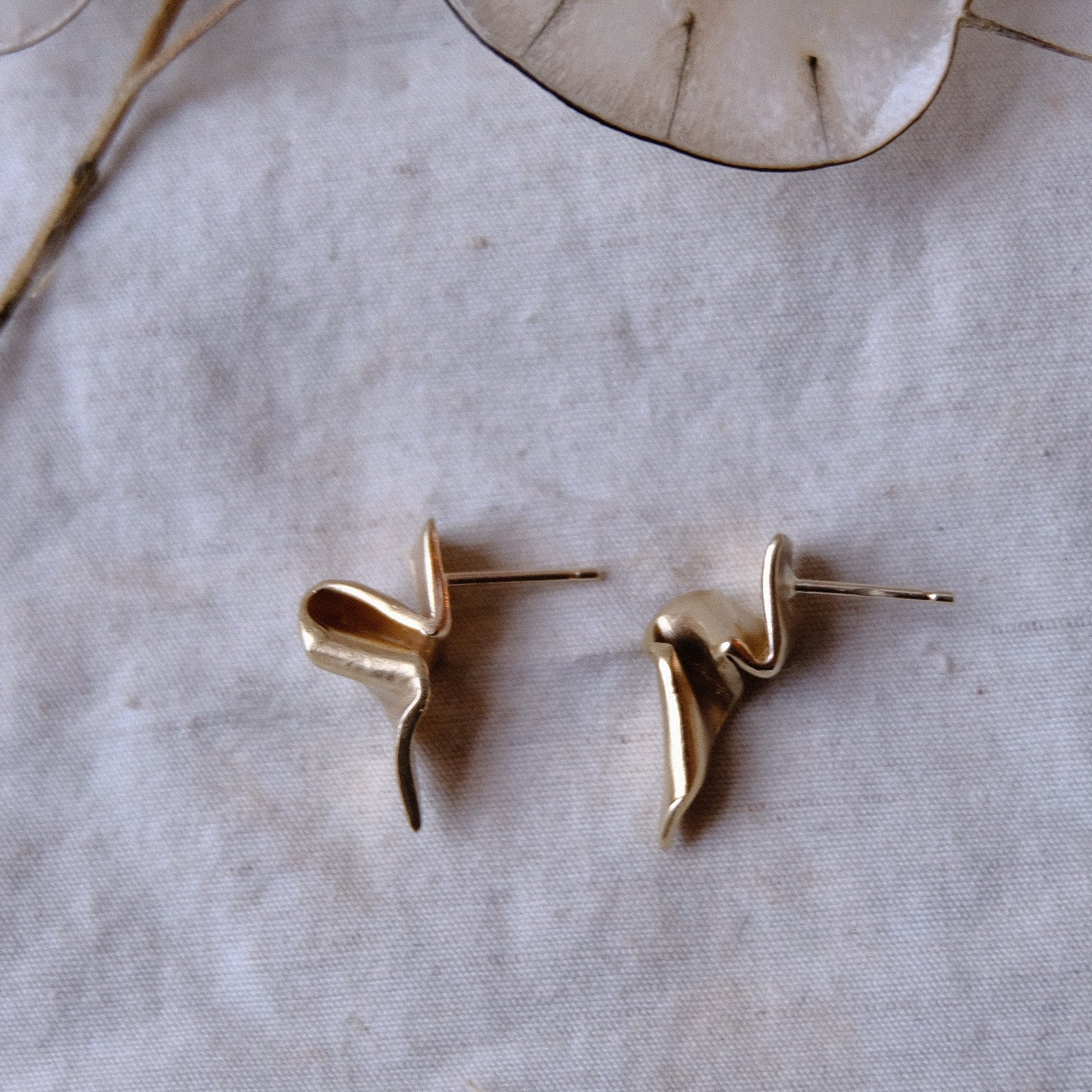 These deserved to be. in gold- the warming tones eco the calm feeing of sitting by water in the sunset. Organic forms , sculptural and entirely unique, these earrings , although small, bring great interest from all angles, A timeless investment piece.