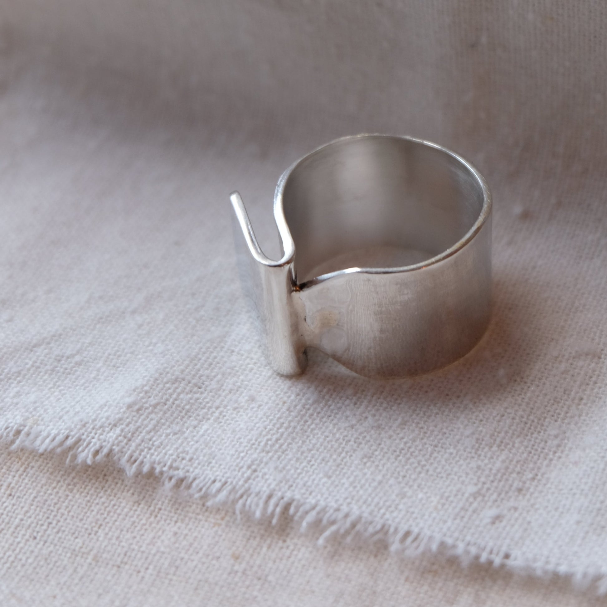 Inspired by the gentle flow of meandering rivers, this minimal sculptural ring captures the fluid movement of the river against its banks. a beauty to wear showcasing how metalcan seem so fluid wrapped around the body,